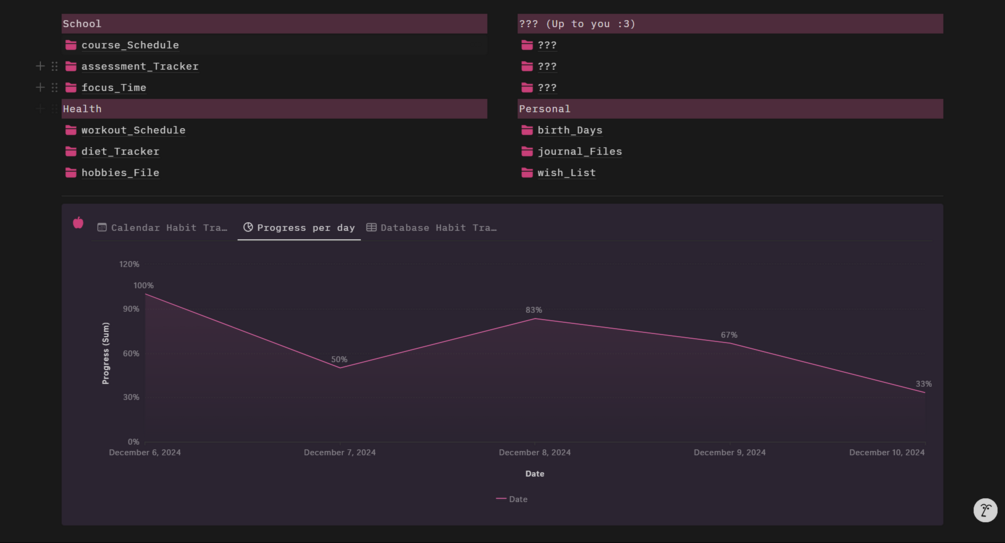 A cyberpunk themed aesthetic notion template with all your needs! Whether its for school, health, personal or other needs, you can organize them right here. This template has: